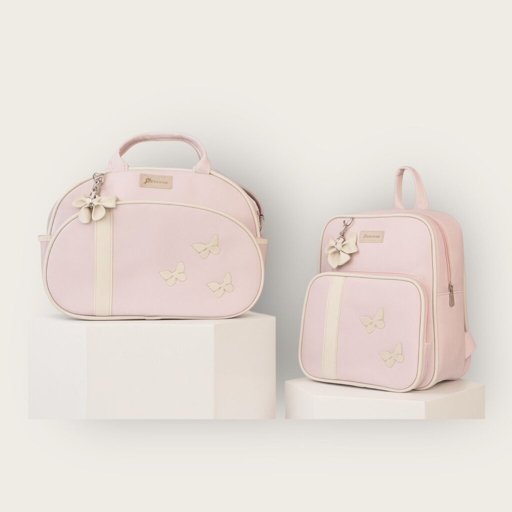 Calçados Baby Dourado Rose Claro com Laço Borboleta