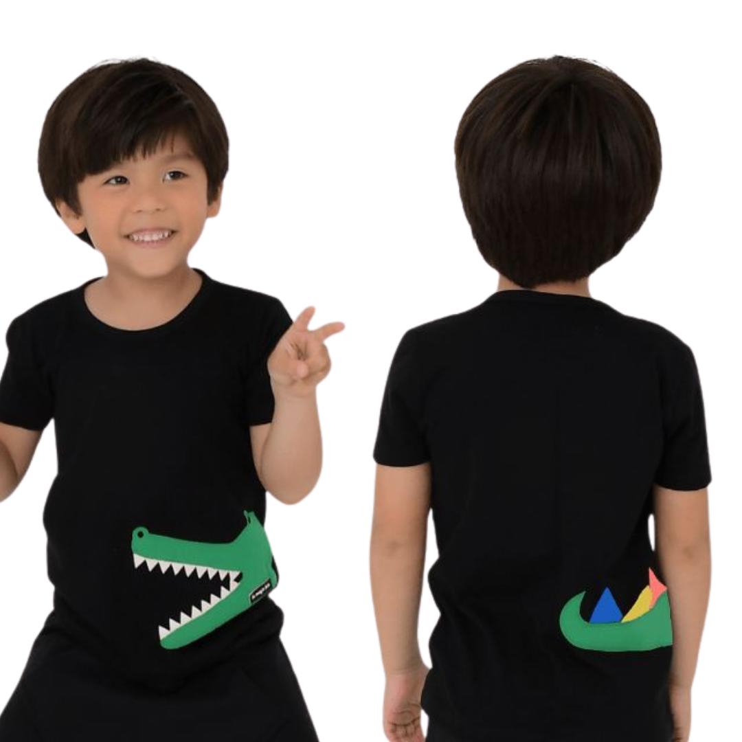 Camisa Infantil Preta Estampa Jacaré Frente e Verso