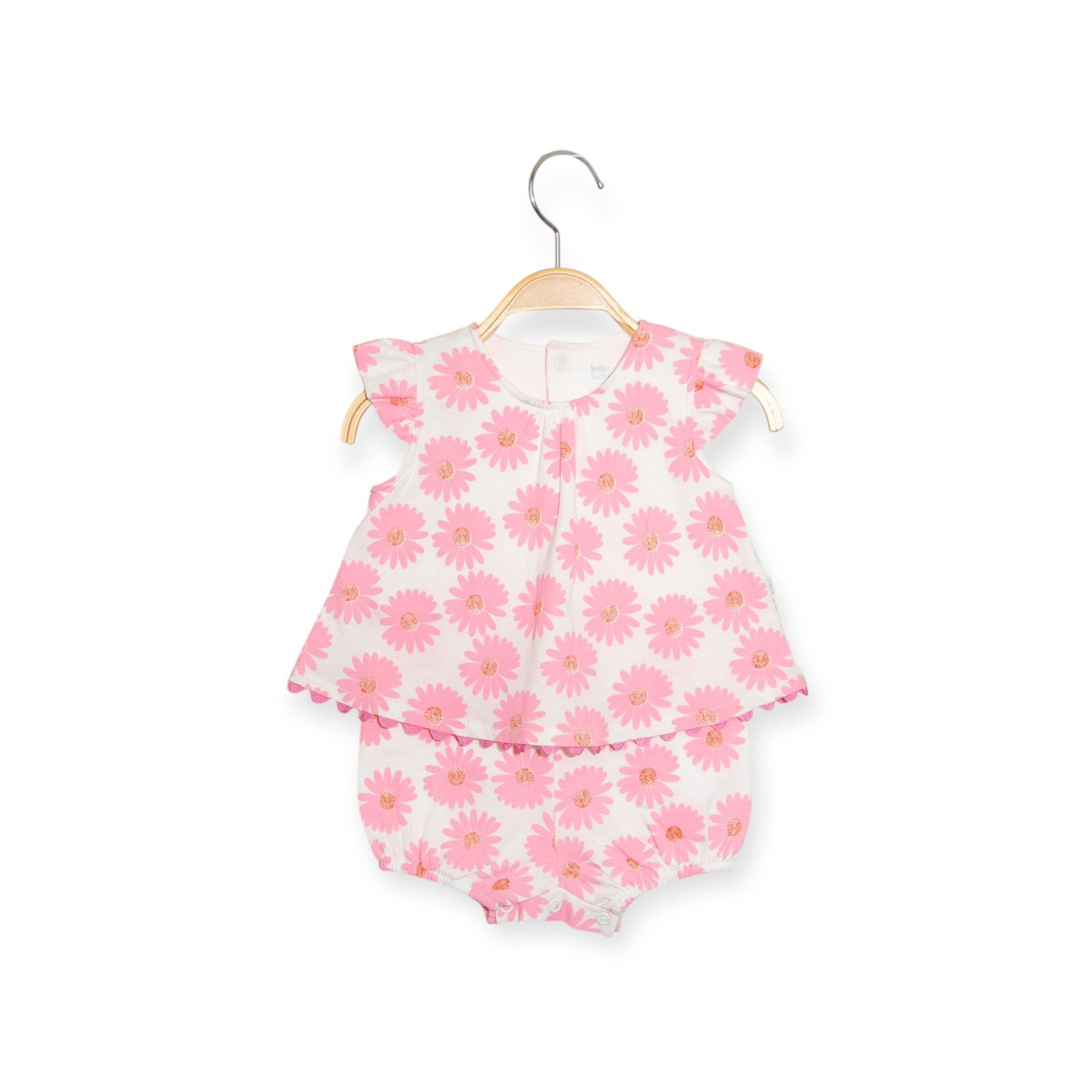 Esse conjunto da Keko é puro frescor e alegria, perfeito para os dias de sol.Estampa alegre: margaridas cor-de-rosa que trazem um ar delicado e divertido.