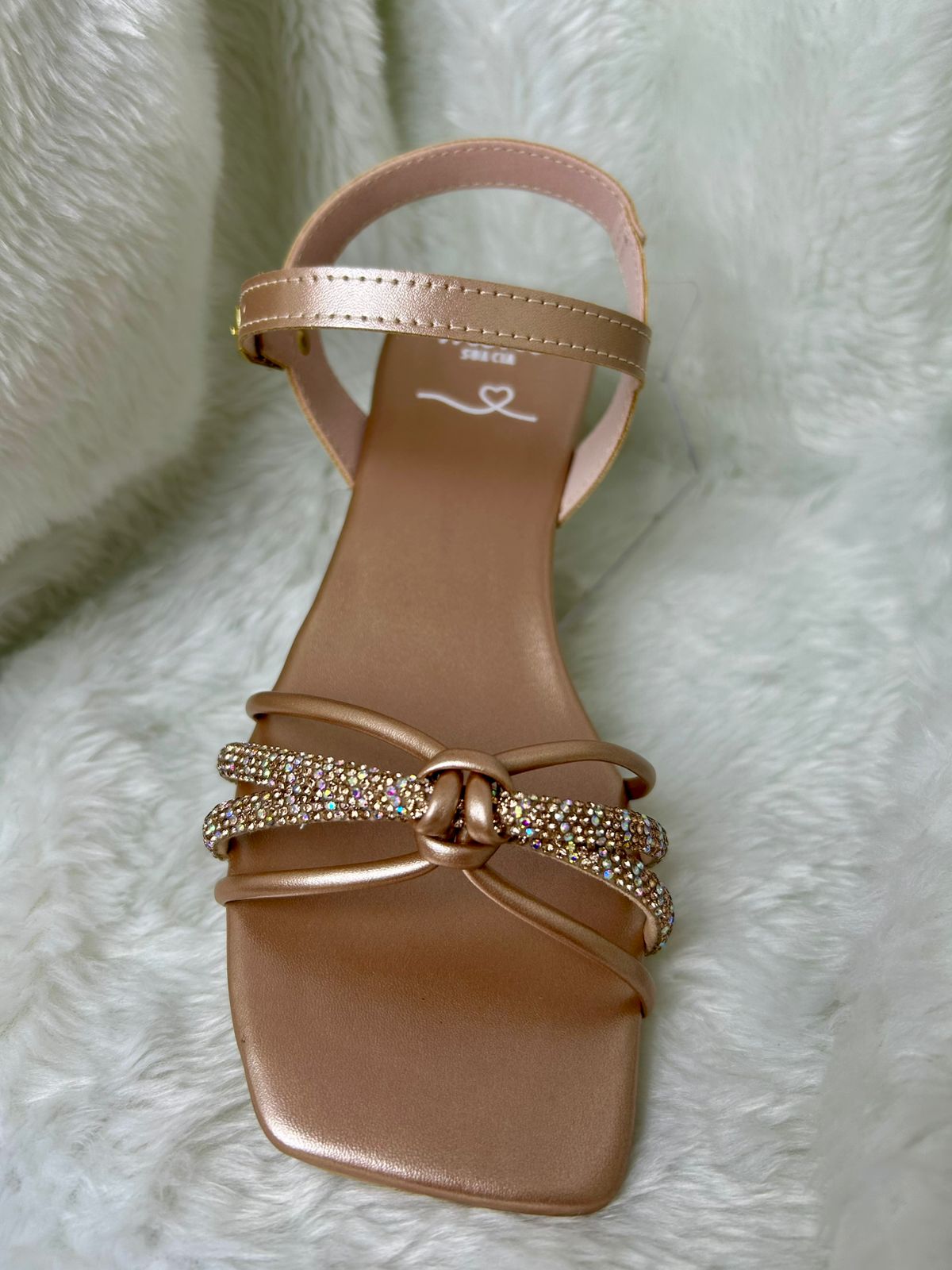 Design sofisticado: Sandália com tiras finas delicadamente trabalhadas em strass coloridos, que garantem muito brilho e estilo.
